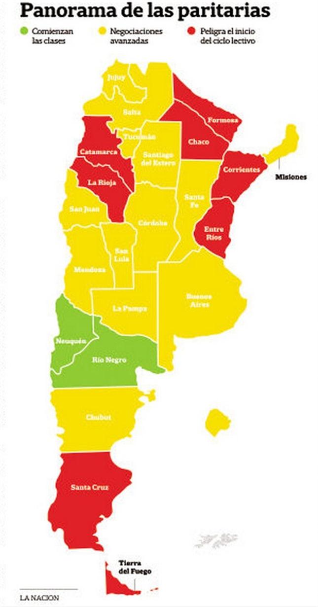 Es la misma historia de todos los años. Cuando falta una semana para el comienzo de las clases, sólo dos provincias tienen asegurado el inicio del ciclo lectivo el 2 de marzo: Río Negro y Neuquén, donde se acordaron aumentos de 30%.