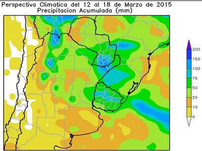Perspectiva Agroclimática del 12 al 18 de Marzo de 2015: Calor y precipitaciones de variada intensidad, seguidos por un moderado descenso térmico