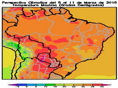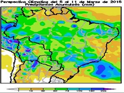 Perspectiva Agroclimática para Brasil del 5 al 11 de Marzo de 2015: Tormentas en la mayor parte Brasil y breve descenso térmico, seguidos por la reactivación del calor