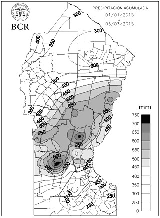 Se trata de una franja que recorre Córdoba y finaliza a orillas del Paraná en Santa Fe ha llovido cerca de 500 mm. Esta zona del país se aprecia muy comprometida.