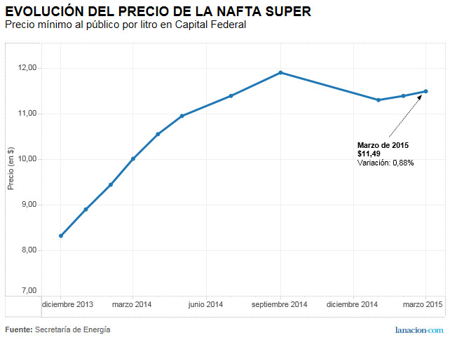 También deslizó algo que podría ser interpretado como una buena noticia para el consumidor de cara al resto de 2015. "Este año el tipo de cambio está rezagado. Si la presión devaluatoria se mantiene y no hay grandes aumentos de costos por las negociaciones salariales, es de esperar que los aumentos sean menores que los del año pasado", explicó el directivo. En otros términos: los combustibles aumentarán este año menos de 33% (en 2014 el litro de nafta súper de YPF en la Ciudad de Buenos Aires costaba $ 8,91 en enero y $ 11,91 en diciembre).