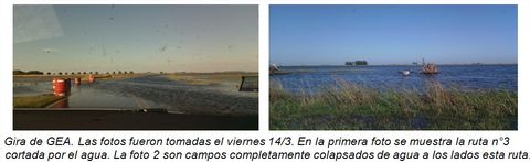 El contraste de este escenario productivamente óptimo es el área afectada por las inundaciones. Los departamentos Marcos Juárez y Unión y las áreas santafesinas aledañas al río Carcarañá presentan lotes inundados. Hay pérdidas totales de lotes y un intenso olor característico de descomposición de la materia orgánica. Se estima que un 5 a 10% del área no podrá cosecharse como resultado de este evento.