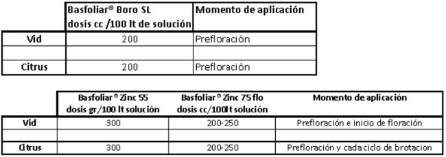 Para solucionar los problemas antes citados, Compo Expert cuenta con Basfoliar® Boro SL, Basfoliar® Zinc 55 (polvo mojable) y Basfoliar® Zinc 75 Flo (floable).