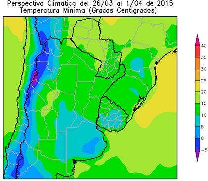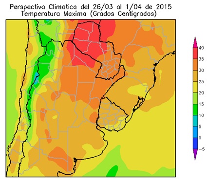 PERSPECTIVA AGROCLIMÁTICA DEL 26 DE MARZO AL 1 DE ABRIL DE 2015: INCREMENTO TÉRMICO Y PRECIPITACIONES SOBRE EL NORTE DEL ÁREA AGRÍCOLA, SEGUIDOS POR UN MARCADO DESCENSO DE LA TEMPERATURA