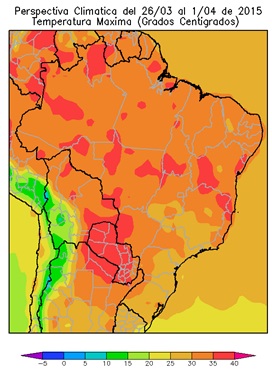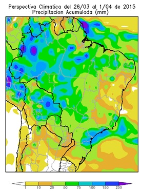 PERSPECTIVA AGROCLIMÁTICA PARA EL BRASIL DEL 26 DE MARZO AL 1 DE ABRIL DE 2015: CALOR Y PRECIPITACIONES EN LA MAYOR PARTE DEL ÁREA AGRÍCOLA BRASILEÑA A EXCEPCIÓN DE PARTES DEL NORDESTE Y EL EXTREMO SUR, SEGUIDAS POR UN MARCADO DESCENSO TÉRMICO