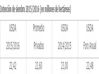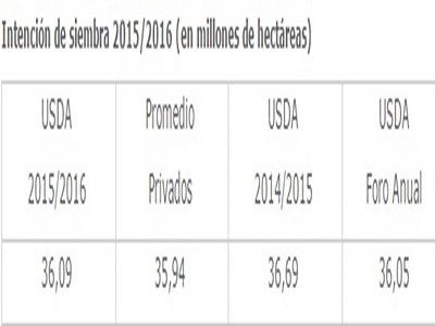 Para la nueva campaña, el USDA prevé una intención de siembra de soja de 34,28 millones de hectáreas, por encima de los 33,90 millones implantados durante el ciclo 2014/2015, pero por debajo de los 34,80 millones previstos por el mercado. De concretarse finalmente esta proyección oficial, la superficie destinada a la oleaginosa crecería en los Estados Unidos por segunda campaña consecutiva. En este caso, la diferencia entre el dato oficial y el esperado por los operadores sí podría interpretarse como un dato alcista, pero en un escenario donde la soja vuelve a ganar espacio.