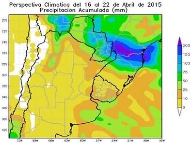 La mayor parte del área agrícola triguera, la mayor parte del cinturón maicero, la mayor parte del Delta y el noroeste de la Región del Sudeste, registrarán precipitaciones entre moderadas a muy abundantes (10 a 50 mm). Observándose focos con precipitaciones superiores a 75 mm. La mayor parte de la Región Sudeste experimentará precipitaciones moderadas (10 a 25 mm).