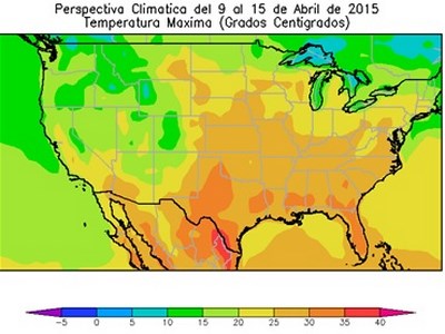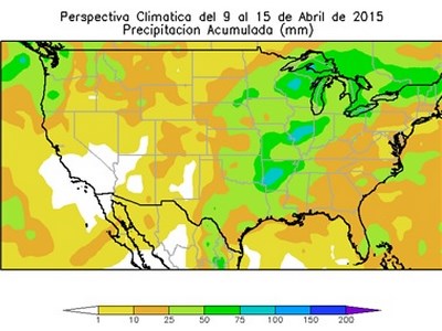 Perspectiva Agroclimática para los EE.UU. del 9 al 15 de Abril de 2015: Temperaturas sobre lo normal y precipitaciones abundantes, seguidos por un marcado descenso térmico