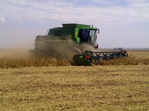 Cosecha de soja de primera en Bouquet, Santa Fe
