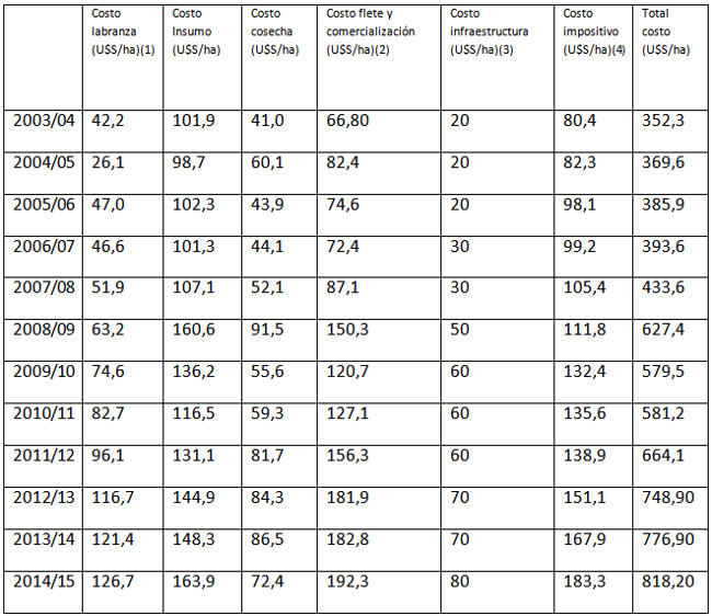 Cuadro 1: Costos total de una hectárea de soja en campo propio