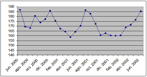 Precios de la soja (Chicago). Junio, 2000 - junio, 2002