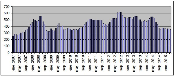 Entre el año 2000 y mediados del 2007, los precios siempre estuvieron por debajo del precio actual.