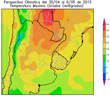 PERSPECTIVA AGROCLIMÁTICA DEL 30 DE ABRIL AL 6 DE MAYO DE 2015: TEMPERATURAS SOBRE LO NORMAL Y PRECIPITACIONES DE VARIADA INTENSIDAD SEGUIDAS POR UN MARCADO DESCENSO TÉRMICO CON RIESGO DE HELADAS GENERALES