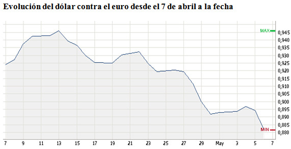 Evolución del dólar contra el euro desde el 7 de abril a la fecha