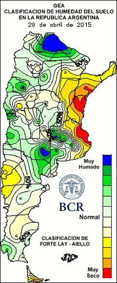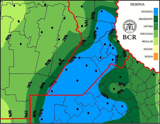 Una contundente tormenta se batió en la región. Intensas ráfagas de lluvias convectivas dejaron acumulados de hasta 150 mm en muy poco tiempo en localidades del sur de Santa Fe y norte de Buenos Aires. Hubo caída de granizo en algunos puntos pero por fortuna no ocasionó daños importantes en el sector agrícola por el avanzado estado de la cosecha.