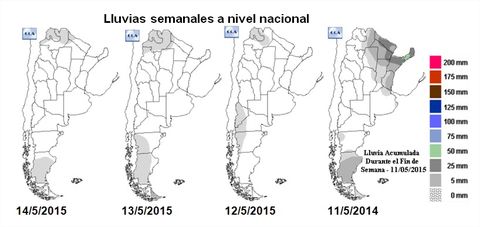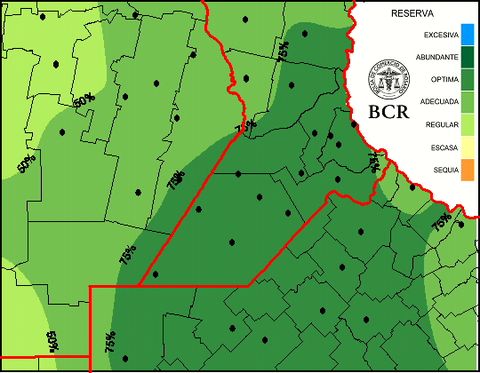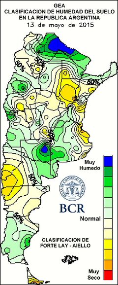 Reserva de agua útil para pradera al 14/5/2015
