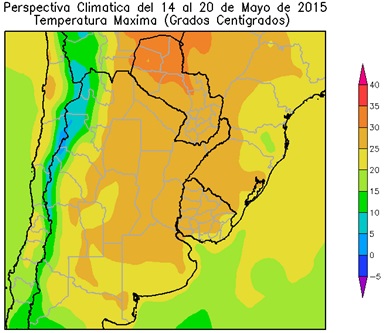 PERSPECTIVA AGROCLIMÁTICA DEL 14 AL 20 DE MAYO DE 2015: ASCENSO TÉRMICO Y PRECIPITACIONES SOBRE EL ESTE DEL ÁREA AGRÍCOLA