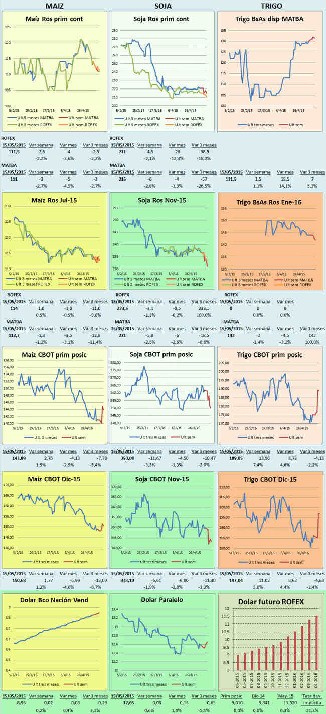 Esta semana finalmente arrancó la temporada 2015/16 con el primer reporte de oferta y demanda mundial del USDA con el balance completo para este año comercial, y con un crecimiento de stocks finales de soja mayor al temido por los analistas, y números algo más ajustados para el maíz, la soja volvió a los pisos recientes, y el maíz está intentando romper el techo de la incipiente tendencia negativa, antes de tocar los mínimos de octubre.