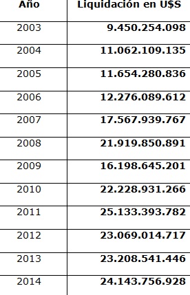 La liquidación de divisas de las empresas del sector en los últimos años fue: