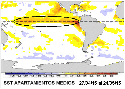 A lo largo de las últimas cuatro semanas el cambio en las anomalías oceánicas