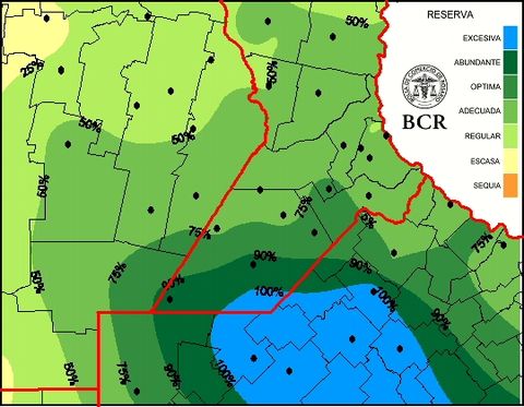 Reserva de agua útil para pradera al 4/6/2015