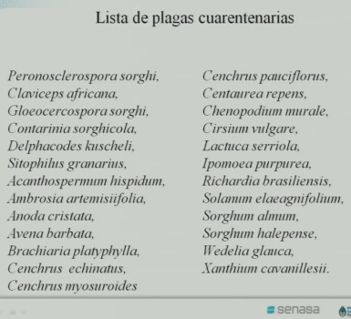 En el 2014 se realizó el Acuerdo sorgo con AQSIQ. En el mismo el SENASA se comprometió a controlar que las empresas lleven a cabo actividades de limpieza, tales como zarandeo en el proceso de cosecha o previo al embarque, para eliminar tierra, residuos, vegetales, impurezas y semillas de malezas peligrosas.