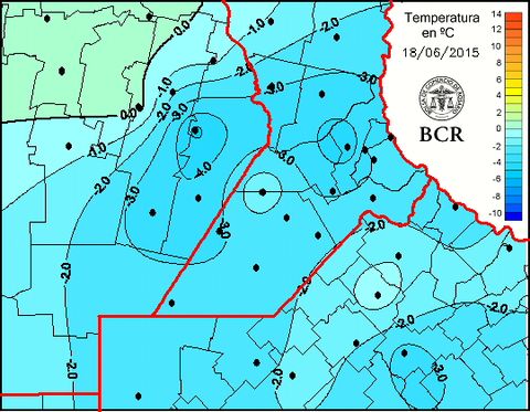 Las anheladas bajas temperaturas finalmente llegaron a los campos y beneficiaron el control de malezas estivales y cultivos guachos. Las últimas 24 hs marcaron las temperaturas más frías del año. En el mapa 1 se observa la cantidad de horas inferiores a los 0 °C. En el mapa 2 se observa que las temperaturas mínimas llegaron a los -4°C. Los barbechos que restan por realizar posiblemente se planifiquen al tener mejores condiciones para la aplicación.