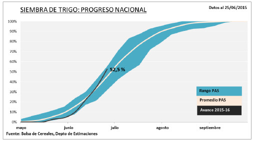 Durante los días previos se relevaron avances de siembra en amplios sectores del extremo sur de la región agrícola, en donde se encuentran las zonas que mayor superficie aportan al área nacional destinada a este cereal de invierno. Esta mayor actividad de siembra permitió registrar un avance intersemanal de 17,8 puntos porcentuales en la incorporación del cultivo, elevando el área implantada al 52,5 % de las 3.900.000 hectáreas previstas para la campaña en curso. En comparación al ciclo previo, la siembra registra un adelanto de 3,7 puntos porcentuales.