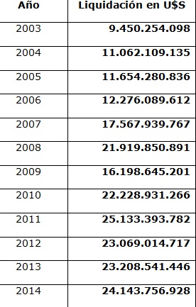 La liquidación de divisas de las empresas del sector en los últimos años fue:
