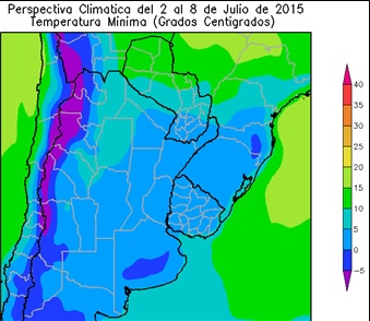 Sólo el oeste y el centro del Paraguay observarán temperaturas mínimas superiores a 5°C, con leve riesgo de heladas localizadas. El este del NOA, el este del Paraguay, la mayor parte de la Región del Chaco, la mayor parte de la Mesopotamia, el este y el centro de Cuyo, la mayor parte de la Región Pampeana, la mayor parte del Uruguay observarán temperaturas mínimas entre 0 y 5 °C, con riesgo de heladas localizadas.