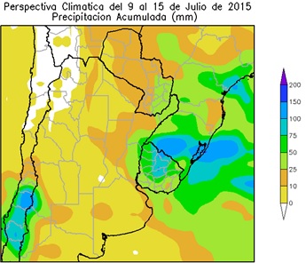 Perspectiva Agroclimática del 9 al 15 de julio de 2015: Ascenso térmico y precipitaciones sobre el nordeste y el centro-este del área agrícola, seguidas por un marcado descenso térmico