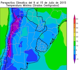 El este del NOA, el centro del Paraguay, el noroeste de la Región del Chaco, el extremo norte de Misiones y el noroeste de Córdoba observarán temperaturas mínimas entre 5 y 10 °C, con leve riesgo de heladas localizadas. El centro del NOA, el este y el centro de Cuyo, el este de la Región del Chaco, la mayor parte de la Mesopotamia, la mayor parte de la Región Pampeana y la mayor parte del Uruguay observarán temperaturas mínimas entre 0 y 5°C, con riesgo de heladas localizadas.