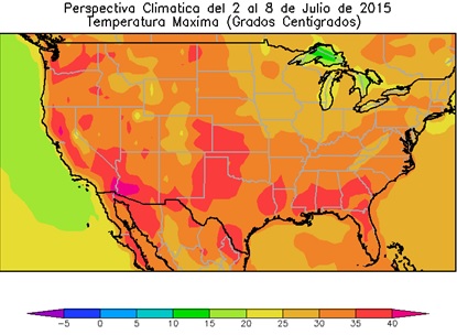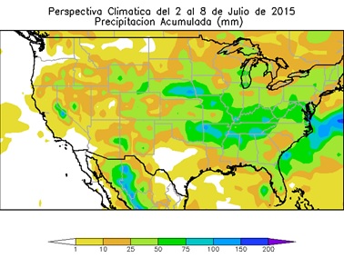 Perspectiva Agroclimática para los EE.UU. del 2 al 8 de julio de 2015: Ascenso térmico y precipitaciones en la mayor parte del área agrícola norteamericana