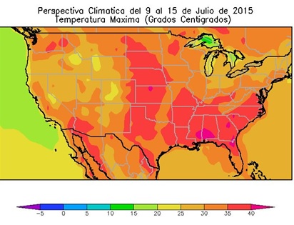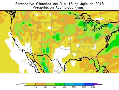 Perspectiva Agroclimática para los EE.UU. del 9 al 15 de julio de 2015: Ascenso térmico y precipitaciones de variada intensidad