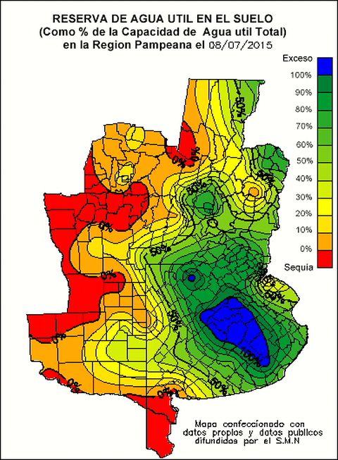 En la provincia de Córdoba se restarían este año 130 mil ha en este ciclo, lo que representa una caída interanual de un 16% para el área triguera. En lo que se refiere a la provisión de agua de la provincia de Córdoba, las lluvias de los últimos días de junio llegaron con acumulados muy modestos, que, en general, estuvieron por debajo de los 10 mm y no han sido suficientes para reactivar la actividad de siembra en los lotes que faltan. Las zonas más atrasadas son las más mediterráneas sobre todo en el centro provincial (ver imagen de reservas de agua). Si no llueve en menos de dos semanas, está en riesgo la concreción de unas 100 mil ha hectáreas con trigo en la provincia.