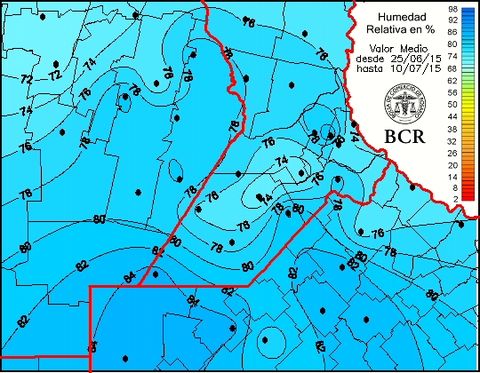 Avanza muy lentamente la recolección de maíz tardío y de segunda. El avance comprende un 64% del total sembrado en diciembre. Los rendimientos promedian los 83 qq/ha y hay un excedente de humedad en los granos de 2 a 4 puntos que incurre al productor a aumentar sus costos de secada. Por otro lado, los productores que no quieren incurrir en este costo, arriesgan la calidad de la mercadería. En el noroeste bonaerense la falta de piso en los lotes impide la colecta y ya se esta notando los vuelcos de la plantas, además del desgrane y la pérdida de calidad de los granos. Los maíces sembrados en diciembre presentan en general más dificultades para llegar a la humedad de recibo que un maíz temprano. Pero esto se ve actualmente agravado porque la humedad relativa de los últimos 15 días promedia el 80% (ver mapa) y los pronósticos a corto plazo presentan nuevas lluvias para el fin de semana.