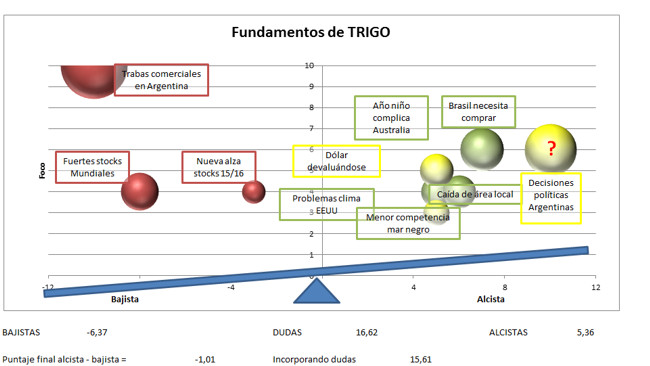 Mientras tanto, y ante la expectativa de fuerte caída en área de trigo, junto a una menor apuesta de tecnología, ya que el precio futuro no justifica la inversión, el gobierno está estudiando introducir una reducción de entre 5 y 10 puntos de derechos de exportación. Pero más del 80% del área ya fue sembrada. Y por otro lado la quita podría ser vía devoluciones, y probablemente segmentadas sólo para pequeños productores, lo cual no generaría buena aceptación en el mercado.