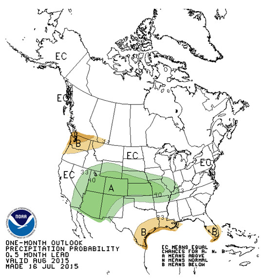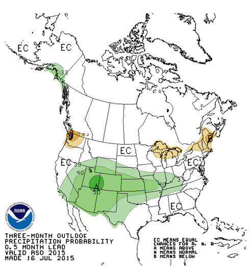 Abajo podemos ver el pronóstico de la Nacional Oceanic and Atmospheric Administration (NOAA).