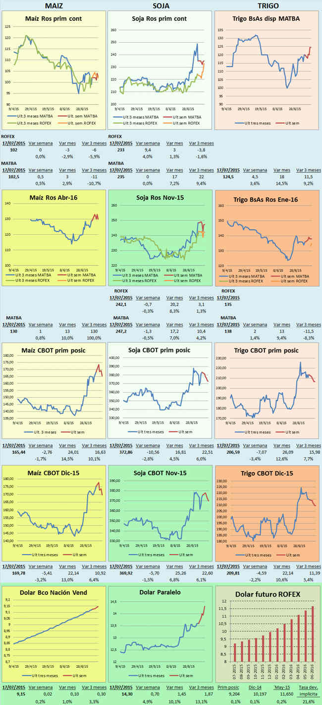 Sin embargo en el mercado local los precios tuvieron una mejor performance que los de Chicago. Para la soja porque a precios más bajos los productores son renuentes a vender. Luego de haber convalidado precios poco atractivos para pagar créditos, muchos productores quedaron casi sin mercadería, y los que aún tienen stocks, se aferran a los mismos a la espera de precios más interesantes, o algún cambio en la política macroeconómica.