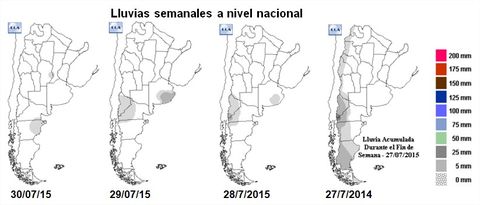 El trigo, a pesar de las buenas condiciones de desarrollo, recibió pobres dosis de nitrógeno a la siembra, no tendrá el refuerzo necesario de la refertilización en macollaje. En la mayor parte de la región, se destaca que los suelos están bien provistos de agua y no deberían tener demasiados problemas para pasar el invierno en el caso de que se afiance un escenario seco. De todas maneras, unas lluvias serían muy bienvenidas al norte de los departamentos cordobeses de Unión y Marcos Juárez, donde empiezan a señalarse algunas deficiencias en lotes con poco desarrollo. De todos modos, los trigos están finalizando el mes de julio en pleno macollaje, sanos y sin daños. El potencial del cultivo parece que esta vez estará más limitado por el exiguo paquete tecnológico aplicado que por las condiciones del clima.