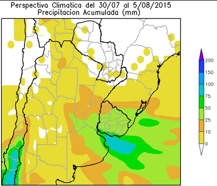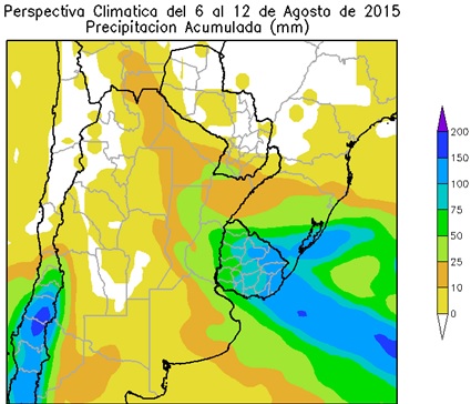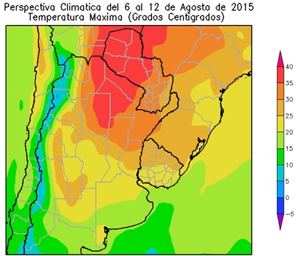 Perspectiva Agroclimática del 6 al 12 de Agosto de 2015: Marcado ascenso térmico y precipitaciones sobre el este del área agrícola, seguidos por el descenso de la temperatura