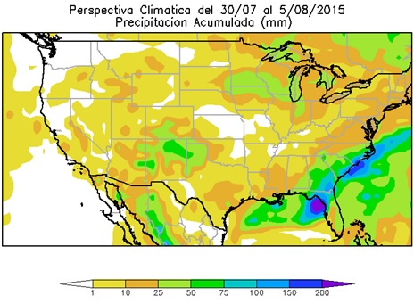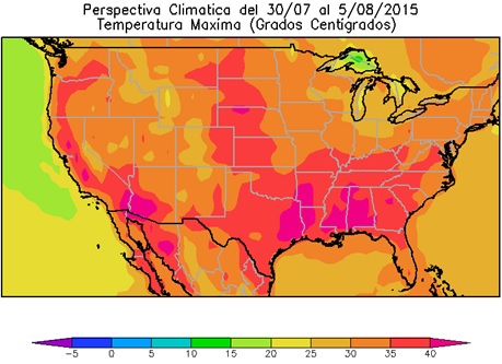 Perspectiva Agroclimática para los EE.UU. del 30 de Julio al 5 de Agosto de 2015: Calor y precipitaciones escasas con focos de tormentas localizadas