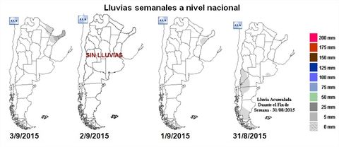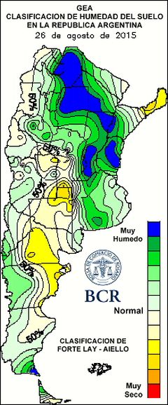 El buen tiempo del fin de semana fue acompañado por temperaturas que superaron largamente los valores normales del mes de agosto con marcas que promediaron entre 27 y 31ºC. Con vientos suaves a moderados y días despejados, las condiciones desecantes empiezan a actuar en los niveles superficiales del suelo. Aunque siguen existiendo inconvenientes con los caminos rurales, la realidad hídrica está mejorando excepto en las zonas aledañas a la cuenca del Salado. Sus condiciones siguen siendo críticas. Afortunadamente los pronósticos anuncian condiciones de estabilidad con un progresivo incremento significativo de las marcas térmicas y buena radiación solar.