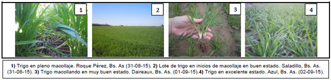 Por último la zona Sudeste de Buenos Aires presenta cuadros transitando macollaje en óptimas condiciones. En esta región también se dieron excesos puntuales que generarían pérdidas de alrededor del 3 % de los cuadros. Desde el punto de vista sanitario, se registran los primeros ataques de enfermedades y se han realizado las primeras aplicaciones como medida preventiva.