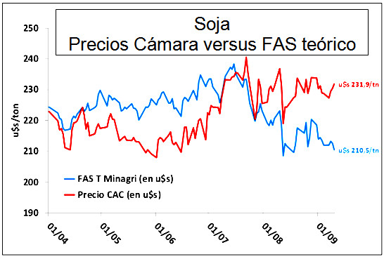pasado, el precio de la soja en el mercado doméstico supera al FAS teórico.