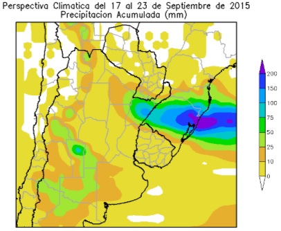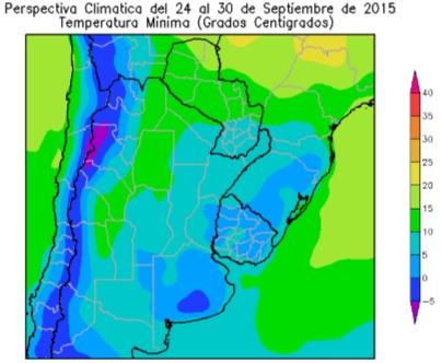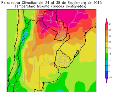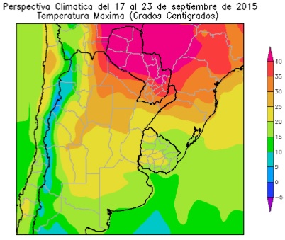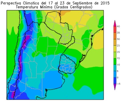 PERSPECTIVA AGROCLIMÁTICA DEL 17 AL 23 DE SETIEMBRE DE 2015: LA PRIMAVERA COMIENZA CON UNA MARCADA OSCILACIÓN TÉRMICA Y PRECIPITACIONES SOBRE LOS EXTREMOS SUDOESTE Y NORDESTE DEL ÁREA AGRÍCOLA