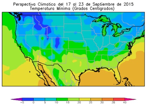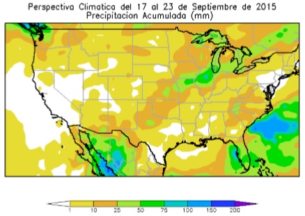 PERSPECTIVA AGROCLIMÁTICA PARA LOS EE.UU. DEL 17 AL 23 DE SETIEMBRE DE 2015: PRECIPITACIONES IRREGULARES Y MARCADA OSCILACIÓN TÉRMICA