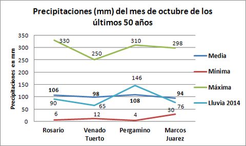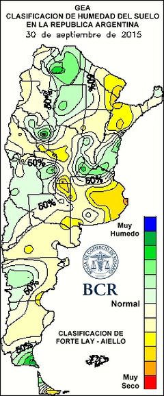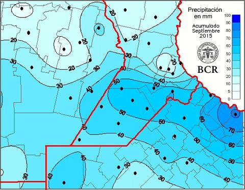 Setiembre cerró por debajo de los promedios de precipitaciones al rever los datos que van de 1970. Esto ayudó a reestablecer a muchos lotes de posiciones topográficas intermedias y bajas pero los trigos del oeste de la región necesitan agua y, a la vez, hay zonas en Córdoba, como las aledañas a Leones, que siguen con bajos y áreas anegadas. Es una paradoja que la misma agua que hace falta para poner en marcha el ciclo agrícola de los granos gruesos y afianzar el rinde de trigo podría traer serios problemas de excesos.