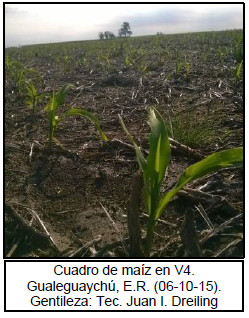 Hacia las regiones del Centro-Norte de Santa Fe y el Centro-Este de Entre Ríos la incorporación de lotes tempranos se encuentra prácticamente finalizada. Los cuadros más tempranos ya se encuentran diferenciando hojas, llegando a estadíos de V4-V8.