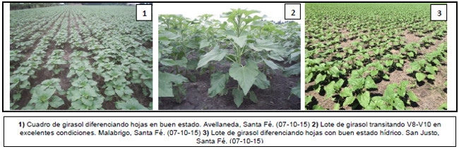 El sector norte de la región Centro-Norte de Santa Fe, presentó precipitaciones que permitieron recuperar humedad en los cuadros implantados con girasol, que se encuentran diferenciando entre 4 y hasta 10 hojas (V4- V10). El estado en general de los lotes es bueno, donde se lograron emergencias homogéneas debido a las precipitaciones ocurridas durante el mes de agosto. El estado sanitario es muy bueno, aunque se registraron casos puntuales de ataques de roya blanca y mildew, principalmente en las localidades de Reconquista, Avellaneda y San Justo.